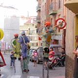Los encargados de tal tarea fueron los integrantes de la compañía catalana Pallassos Perillassos que provistos de un divertido carromato y subidos en zancos, organizaron diversos juegos en la plaza la Palla para los más pequeños.