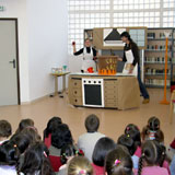 Escaparate/Onil. Fueron muchos los niños que acompañados de sus padres acudieron a una nueva sesión de cuenta cuentos en la biblioteca de Onil, sta vez para cocinarlos ellos mismos. Rebeca y Paco se vistieron de cocineros y narraron en una pequeña cocina, con olla incluida, el cuento de los Tres Cerditos, el de Blancanieves y la Cenicienta. Después fueron los propios niños quienes pusieron en escena el famoso cuento de Caperucita Roja.