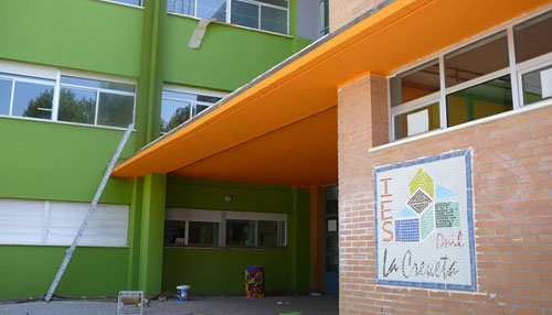 El instituto La Creueta luce una nueva imagen, más juvenil, después de haberse pintado la fachada con los colores del logo del centro: naranja, amarillo y verde. La idea, explica el director, Pepe Toro, es que sea “un nuevo instituto” y que el cambio de organización interno se refleje también en su aspecto exterior. A partir del próximo curso, el IES La Creueta impartirá tres ciclos, dos de nivel superior (comercio internacional y logística) y uno de grado medio de actividades deportivas. Respecto a este último, ha sido tan buena la acogida que ya hay lista de espera y para el próximo curso, La Creueta solicitará el grado superior.