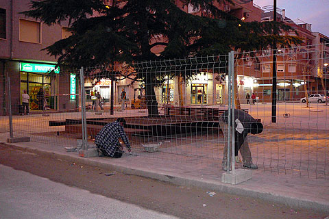 Escaparate/Ibi. Después de su inauguración el pasado 4 de enero, el Ayuntamiento ha vuelto a cerrar a la circulación de peatones la nueva plaza Reyes Magos para finalizar las obras.