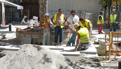 Comienza a pavimentarse la plaza La Palla ante el descontento de los comerciantes por el retraso