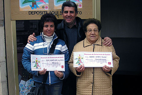 Escaparate/Castalla. La Asociación de Comerciantes de Castalla entregó el sábado día 23 tres cheques por un valor total de 5.000 euros, que correspondieron a María Durá Juan (primer premio, 3.000 euros), Paqui Ortiz Giner e Isa Martínez Álvarez (segundo y tercer premio, 1.000 euros).