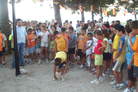 Después, como es habitual, se iniciaron los juegos tradicionales organizados para disfrute de los más pequeños. Entre las actividades que se realizaron se encontraba el tiro de barra y juegos de carreras y saltos. Fueron muchos los niños y niñas que se acercaron hasta allí para participar en los juegos. Los ganadores se llevaron un conejo, un premio al igual que las actividades, tradicional.