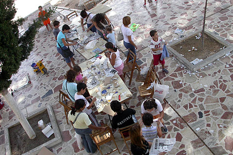 El sábado por la mañana continuaban las actividades en el paseo de la Santa, organizadas por el Casal de la joventut. Los más jóvenes disfrutaron con los talleres y manualidades, en los que participaron como monitores, los alumnos del curso de monitores del centro de vacaciones.