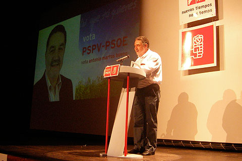 El candidato socialista, Antonio Martos, estuvo arropado por el candidato del PSPV-PSOE a las Cortes Valencias por la provincia de Alicante, Ángel Luna, por el secretario comarcal de los socialistas, Josep Marset, la alcaldesa de Onil, Merce Mira y por el ex alcalde de Ibi, Vicente García, además de militantes y simpatizantes.
