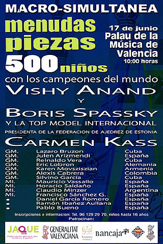 Escaparate/Comarca. Una treintena de jóvenes de Castalla e Ibi viajará a Valencia este sábado para participar en una macrosimultánea, donde alrededor de 500 chavales se enfrentarán a 13 expertos ajedrecísticos, entre los que se encuentran los campeones del mundo Vishy Anaud y Boris Spassky, la top model y presidenta de la Federación de Ajedrez de Estonia, Carmen Kass, seis Grandes Maestros y cuatro Maestros Internacionales, entre los que se encuentra el ibense Antonio Granero.