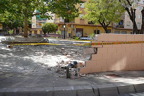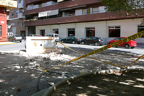El coche no estaba asegurado por lo que será el Ayuntamiento quien tenga que costear los gastos de reparación de la Plaza Constitución. La Policía Local delimitó la zona accidentada para evitar nuevos incidentes.