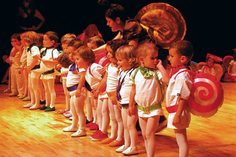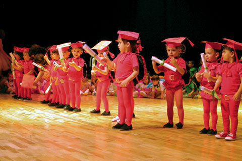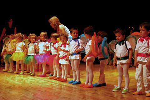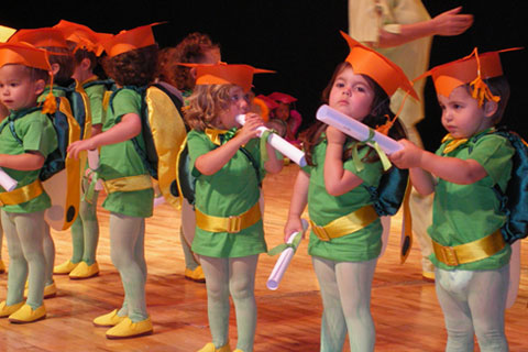 Escaparate/ONIL. El centenar de alumnos de la escuela infantil El Barranquet de Onil representó el cuento del caracol Cardito que no le gustaba su casa, el caparazón, y prefería una de ladrillos. Vestidos de flores los niños más pequeños y de distintos animales, los de cursos superiores, todos representaron esta historia con la que hicieron disfrutar a sus padres y familiares. Los trajes, elaborados por la empresa colivenca Limit Sport, bajo las directrices de las educadoras del centro, llamaron la atención por el colorido y su originalidad. La directora de la escuela, Ángela Sempere, se mostraba satisfecha con el resultado de la representación y recordaba el esfuerzo de más de dos meses que supone el montaje del espectáculo. Para acabar el acto, se entregaron las orlas y los diplomas a las cuatro clases del último curso.