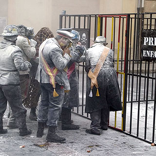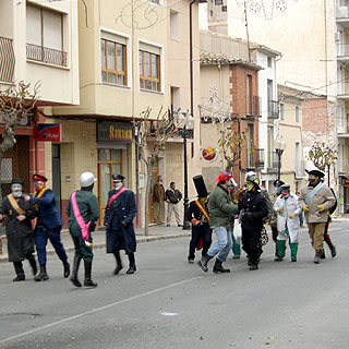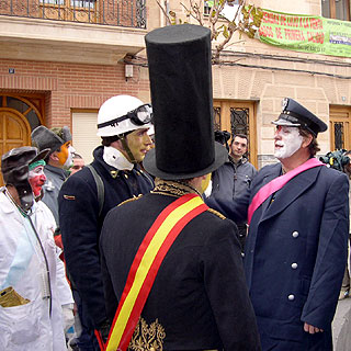 Escaparate/Ibi. La Festa dels Enfarinats volvió a ser ayer el centro de atención para medios de comunicación de todo el país y numerosos fotógrafos que siguieron con sus objetivos durante toda la mañana a este peculiar grupo que toma el poder simbólico por unas horas en Ibi.
