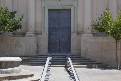 Escaparate/IBI. Para facilitar la salida de la carroza de la Mare de Déu de la parroquia de la Transfiguración del Señor, el Ayuntamiento está construyendo una rampa de madera que se colocará entre los dos rieles que hasta ahora sirven para descender la carroza. El concejal de Fiestas, Santiago Doménech, explica que con esta medida se pretende facilitar la bajada y subida de la Virgen que hasta ahora resulta bastante complicada y peligrosa.