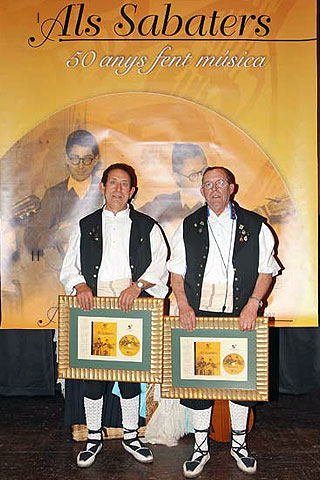 El momento más emotivo, por inesperado, fue cuando Carlos y Juan Cerdá Rico recibieron el CD enmarcado en un cuadro con el lema: Els Sabaters, 50 anys fen música.