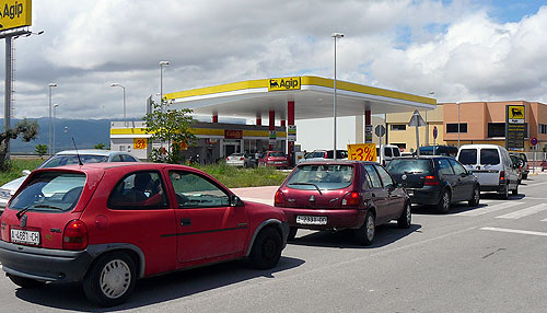 La gasolinera de Castalla fue una de las primeras en quedarse sin suministro, ya el domingo por la tarde. El lunes, Onil fue otra de las afectadas y en Ibi, poco a poco, las gasolineras dejaron de dar servicio a los clientes. El martes por la mañana, sólo la gasolinera del polígono podía llenar los depósitos de los vehículos que hacían cola. Pero a mediodía, se les acababa el combustible.