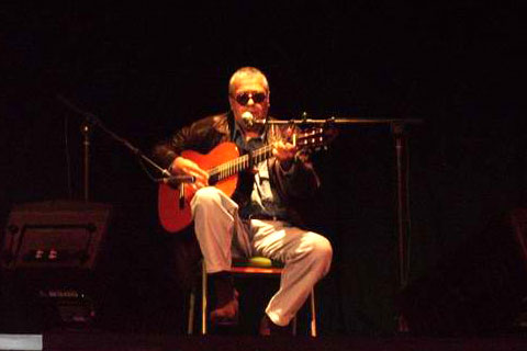 Lentamente, con paso débil, bastón en mano, se aproximó allí donde el foco le tenía iluminado su sitio. El gran escenario fue ocupado por un hombre y una guitarra. Y digo bien, los aproximadamente cien metros cuadrados, que me pareció podía tener aquel escenario, estaban totalmente ocupados. Una intensa humanidad lo había llenado provisto, eso sí, por un arma poderosa, una guitarra. Hermosa herramienta, que sabe del trabajo y de viajes mas que todos los sindicatos y Viajes Halcón por citar un solo ejemplo.