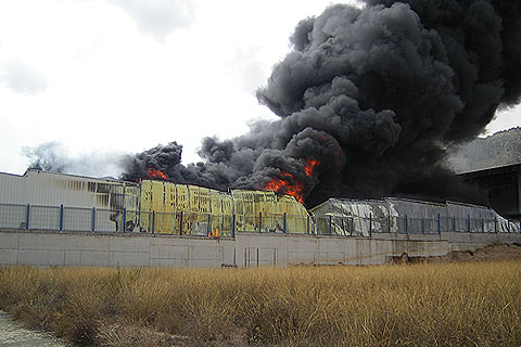 Pie de Foto 1: Humareda que se podía observar a la entrada del polígono
