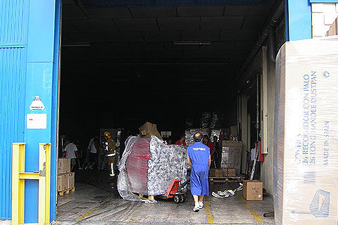 Fotos 3 y 4: Trabajadores de Togoy sacan la mercancía a la calle