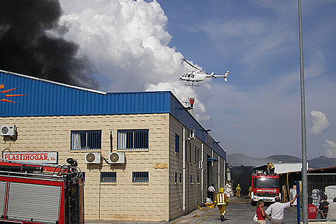 La intensidad de las llamas era tal que hora y media después del incendio, se avisó a un helicóptero de los bomberos que, tras varias descargas de agua, consiguió reducir el incendio que estaba concentrado en el almacén.