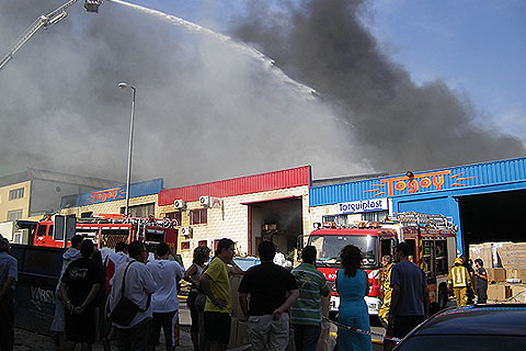Sin embargo las naves de la empresa Togoy, donde se originó el incendio, no tuvieron la misma suerte y se vieron afectadas por las llamas. En total ardieron tres naves: dos almacenes propiedad de esta firma dedicada al menaje del hogar, y otra de la empresa D’azucar, que fabrica muñecas artesanales. A pesar de disponer de ocho dotaciones de bomberos, procedentes de Ibi, Alcoy, Villena y San Vicente, no se pudo evitar que el incendio se propagara por la parte trasera de las naves y afectara a más de 2.000 metros. Esta zona estaba siendo utilizada como almacén de plástico por la empresa Togoy a pesar de que, según algunos empresarios locales, se trata de un pasillo que tendría que estar abierto como medida de protección ya que está pegado a la valla de delimitación de la parcela.