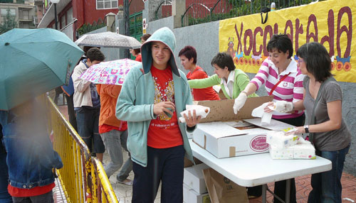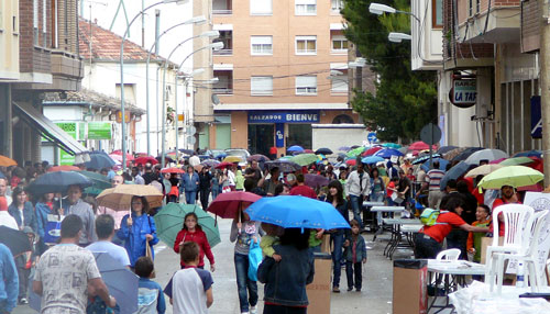 Justo cuando iba a dar comienzo la chocolatada comenzó a llover con intensidad, lo que obligó a los asistentes a cobijarse bajo las cornisas o en la Casa de Cultura, si bien muchos optaron por recoger su vaso de chocolate y su bollo a pesar de tener que hacer cola bajo la lluvia.