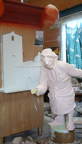 El artista fallero, José Luis Sanchis, ha querido rendir su particular homenaje a ‘Les Festes d’estiu d’Onil’, las que perviven y las que han ido desapareciendo. La Falla de Sant Jaume, que se plantará el jueves 24 de julio por la tarde, rememora la festividad de Santa Ana con la ermita y las carreras de los niños y la original fiesta ‘Mon anem a Agost’, con una madre y dos niños, cargados con algunas de sus pertenencias.
