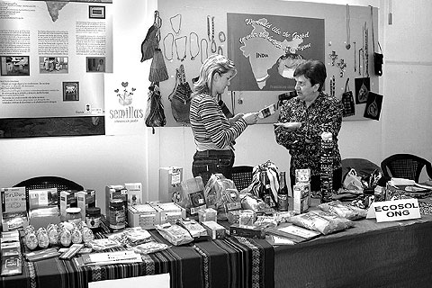 Puesto de comercio justo en el mercado municipal de Ibi