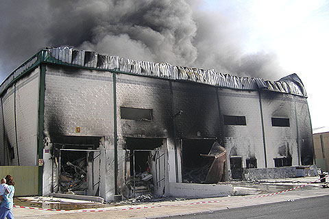Sobre las 23,30 horas del martes, los bomberos lograban controlar el fuego y las máquinas de inyección y los equipos de refrigeración, no resultaron afectados. Quince horas después de comenzar el incendio todavía había llamas en el interior del almacén, al que no podían acceder los bomberos por el peligro de derrumbe.