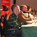 Jaume Martorell de la APDUA (asociación de universitarios con discapacidad de la Universidad de Alicante) ha sido el moderador de esta primera mesa redonda en la que han intervenido otros miembros de esta agrupación además de Carmen Pérez de la ONCE de Biar y del joven ibense Marcial Mallebrera.