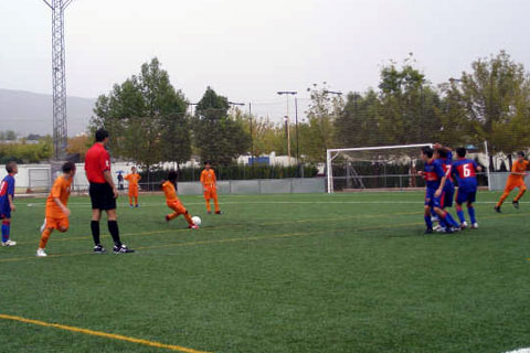 Escaparate/Ibi. El Alicante CF es el equipo que mejor aguantó el chaparrón que caía el sábado 22 por la mañana sobre el Estadio Vilaplana Mariel de Ibi.