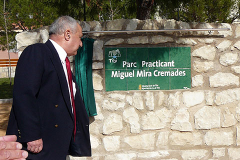 El practicante Miguel Mira inaugura el nuevo parque del mercado en Tibi que lleva su nombre