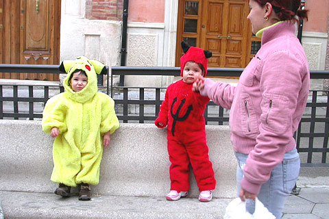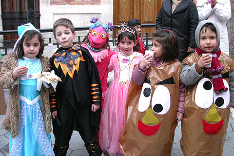 Los escolares aprovecharon los disfraces que lucieron esa misma tarde en las fiestas de carnaval de sus colegios y prolongaron la jornada festiva aprovechando que hoy viernes no hay clase.