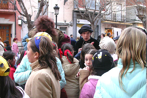 Escaparate/Ibi. A pesar del intenso frío, niños, jóvenes y padres acudieron ayer jueves por la tarde a la plaza de la Palla a la fiesta de carnaval que organizó, por primera vez, el Ayuntamiento de Ibi.