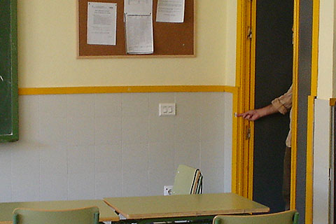 Una bala de un rifle de caza impacta contra la puerta de un aula del instituto de Onil