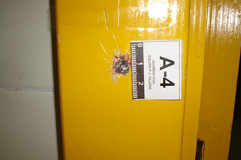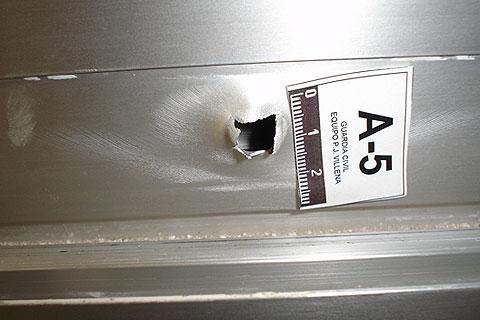 Fuentes policiales han manifestado a este periódico que el autor realizó el disparo a una distancia de más de 500 metros desde la zona residencial de enfrente. La Guardia Civil afirma que se trata de un rifle de caza mayor por el calibre del impacto.