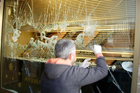 Escaparate/ONIL. A las cuatro de la madrugada del jueves, cuatro individuos de nacionalidad extranjera, según los vecinos, forzaron la reja de la joyería Arias, situada en la avenida Constitución, y tras romper las vitrinas con un mazo, sustrajeron joyas por valor de 90.000 euros y relojes valorados en 30.000. Los vecinos, alertados por las voces de los presuntos autores, alertaron a la Policía y pudieron divisar cómo los cuatro individuos se subían a un Audi plateado para darse a la fuga. Según los testigos, se trataban de personas jóvenes de nacionalidad extranjera.