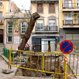 Escaparate/Onil. La retirada del árbol de la “placeta de San Vicent” no ha gustado a los vecinos de estas calles. Aseguran que era un árbol emblemático por encontrarse en el centro del municipio. En un principio, se podó para poder estudiar, con total seguridad, el problema. Realmente, el hundimiento se debió a unas filtraciones causadas por una rotura de una tubería, sin embargo, se ha comprobado que al otro lado de la plaza, las raíces estaban perjudicando las aceras e incluso las viviendas, de ahí que se haya decidido arrancarlo definitivamente y plantarlo en un solar próximo al cementerio.