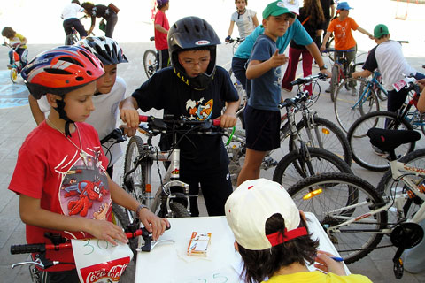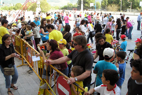 En total se prepararon unas 600 bolsas con un minibrick de zumo, una botella de agua, un bollo de chocolate y una caja de rollitos. Una vez recobradas fuerzas, los ciclistas emprendieron la vuelta al colegio por dos recorridos alternativos, dependiendo de sus edades.