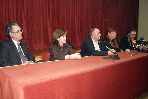 Pie de foto. De izq. a dcha.: José Vicente Verdú, miembro del Consejo Local de EU; Gloria Casado, coordinadora local de EU; José García Gea, portavoz municipal; Gloria Marcos, candidata a la Presidencia de la Generalitat por EU y LLuis Torró, candidato autonómico por Alicante.