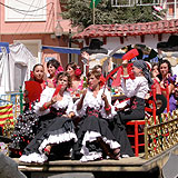 La comparsa Mozárabes abría el desfile con su capitán Ramón Climent y su abanderada María Teresa Amorós que deleitaron al público con un esmerado boato que imitaba un mercado medieval y la variedad de los trajes especiales que lucieron las escuadras.